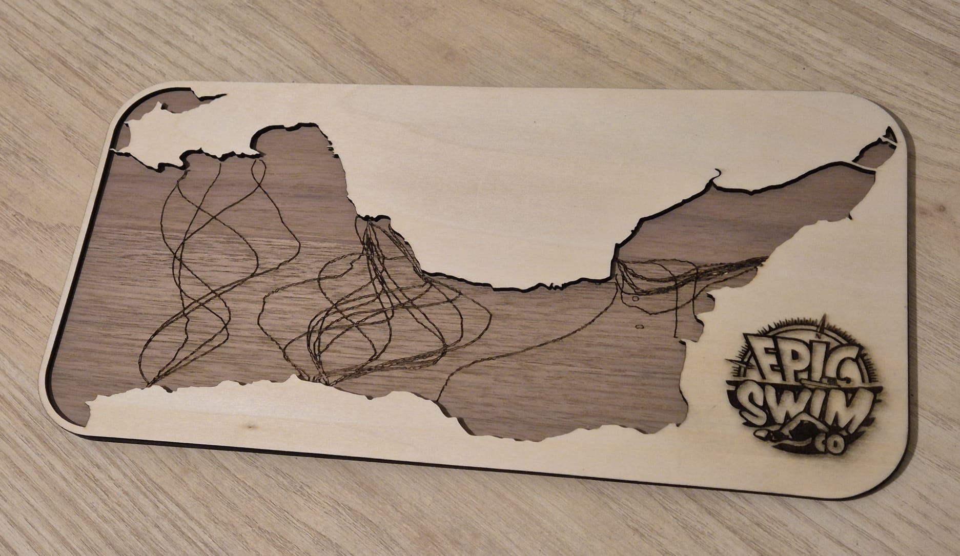 How it works: drop us an email with details of your swim, what style and size you would like and send us the GPS file. We will knock up a proof and send it to you. Once agreed, we will produce your design and drop it in the post, its as simple as that! Your swim immortalised in wood forever! Email us with your track!