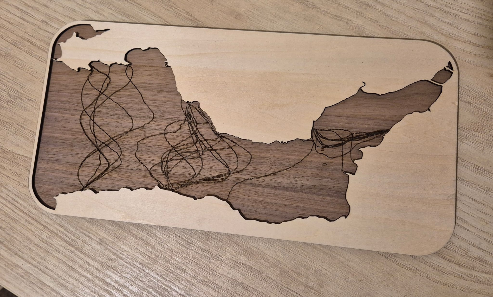 Laser cut from walnut and maple, our laser swim tracks take your GPS file and convert them into something amazing you can hang on your wall! They all come with a hanger cut into the back.